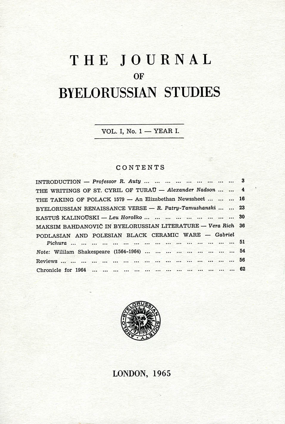 The Journal of Belarusian Studies 1965 (Vol. I, No. 1, Year I)