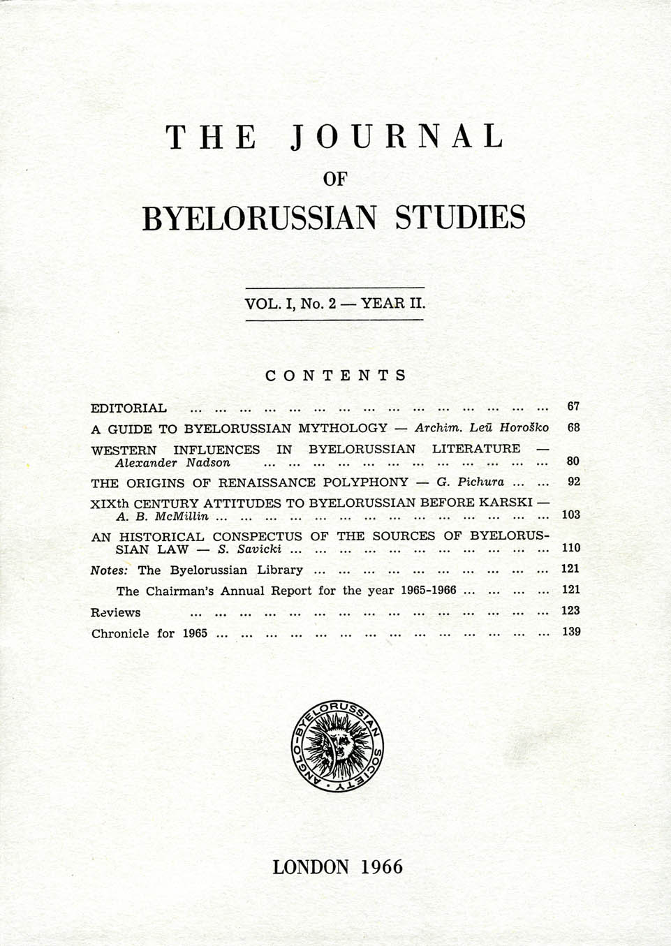 The Journal of Belarusian Studies 1966 (Vol. I, No. 2, Year II)