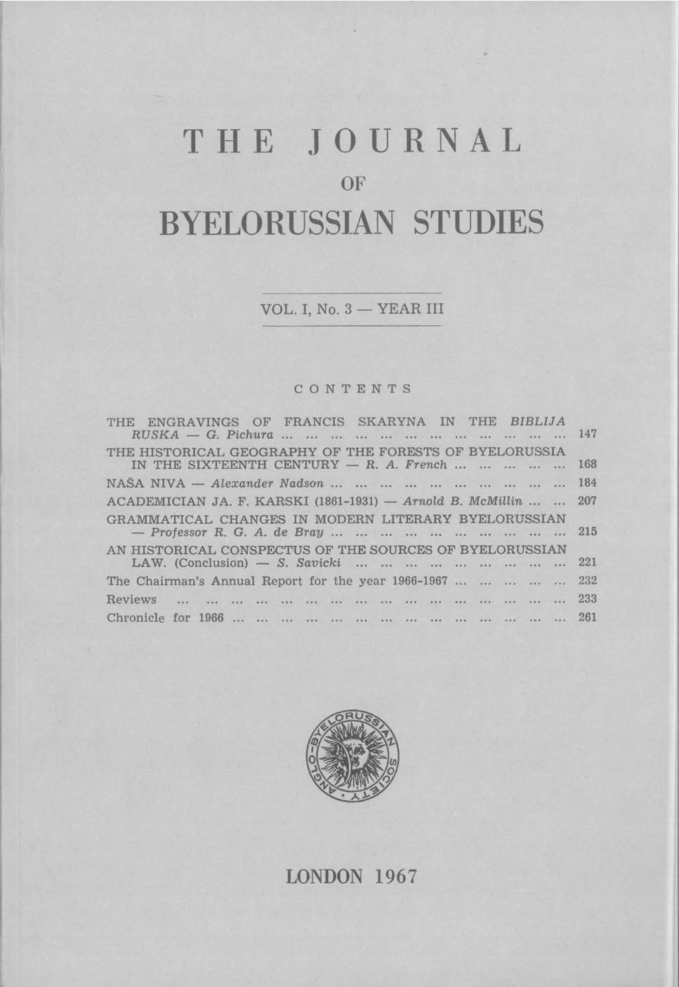 The Journal of Belarusian Studies 1967 (Vol. I, No. 3, Year III)