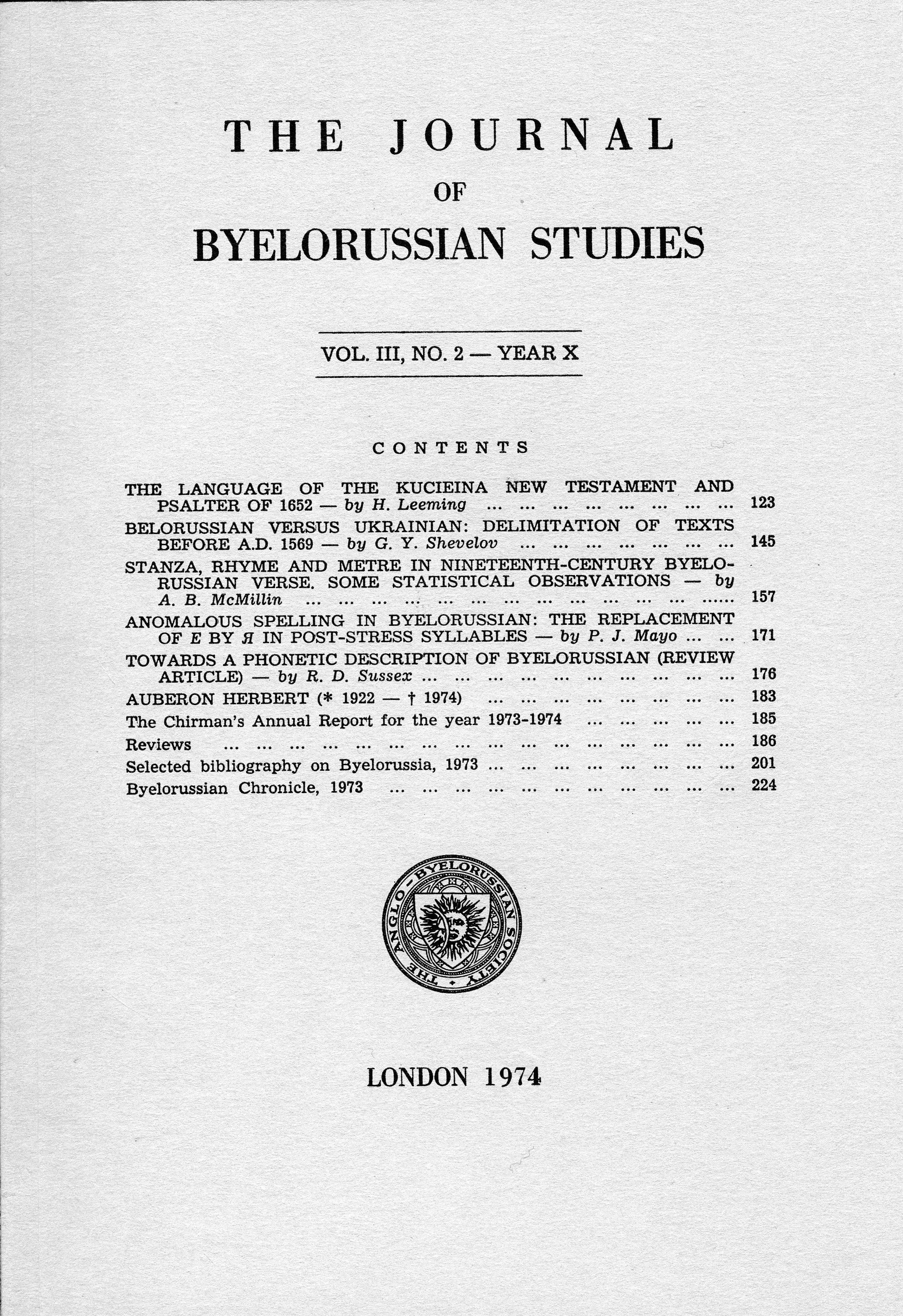 The Journal of Belarusian Studies 1974 (Vol. III, No. 2, Year X)