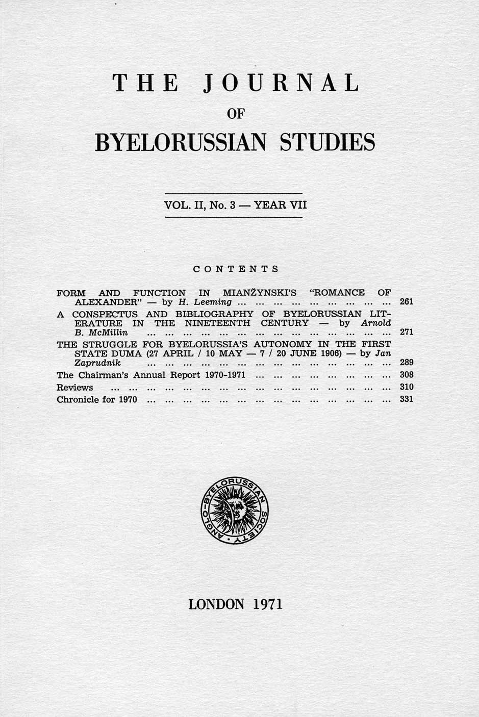 The Journal of Belarusian Studies 1971 (Vol. lI, No. 3, Year VlI)