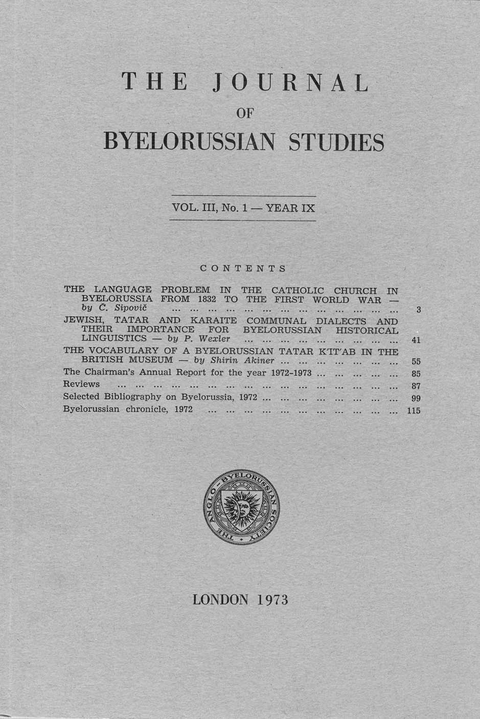 The Journal of Belarusian Studies 1973 (Vol. III, No. 1, Year IX)