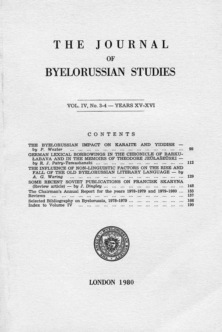 The Journal of Belarusian Studies 1968 (Vol. I, No. 4, Year IV)